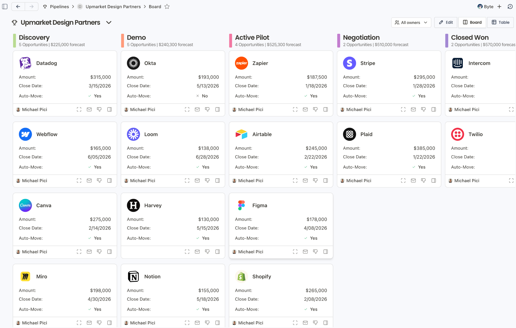 - "Every week analyze my pipeline and summarize deals that moved, stalled, or need attention. For those that need attention, make a suggestion for how I should proceed."